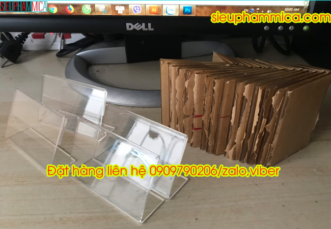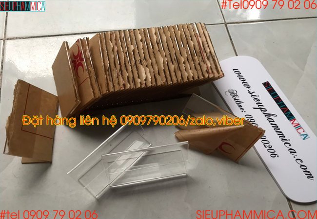Kệ giá tiền, kệ thông tin sản phẩm được làm từ mica trong Đài Loan bóng sáng, được cắt uốn tỉ mỉ, có một khe nhỏ để lồng được vừa 1 tờ giấy vào bên trong. Do tính chất trong suốt của mica nên chúng ta có thể thấy được thông tin trên giấy.
