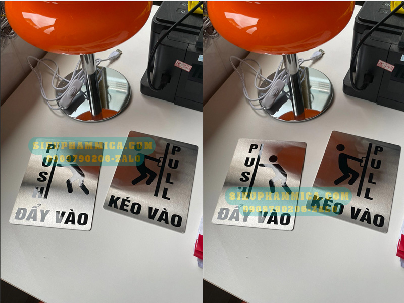 Làm biển pull & push chất liệu inox