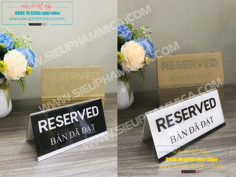 Bảng Reserved mica, bảng đặt bàn mica, gia công bảng mica chữ V