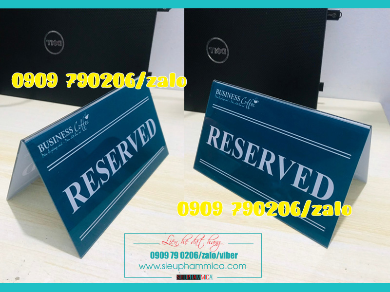 Biển đặt chỗ reserved còn có các tên gọi khác là: Biển mica để bàn, Biển mica bàn đã đặt. Biển reserved mica, Biển reserved inox, biển đặt chỗ cho nhà hàng, Biển đã đặt chỗ cho quán café phòng trà….