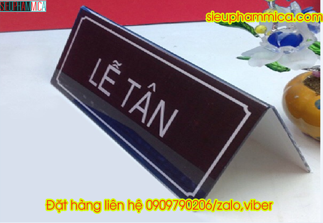 Biển chức danh mica đế gỗ hay dung trong hội trường hội họp