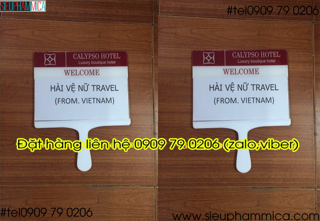 Sieuphammica.com là đơn vị chuyên cung cấp các sản phẩm làm từ mica đài loan, bán vật liệu quảng cáo và làm biển quảng cáo các loại. Trong đó có biển đón sân bay cầm tay với nhiều kích thước thiết kế theo yêu cầu.