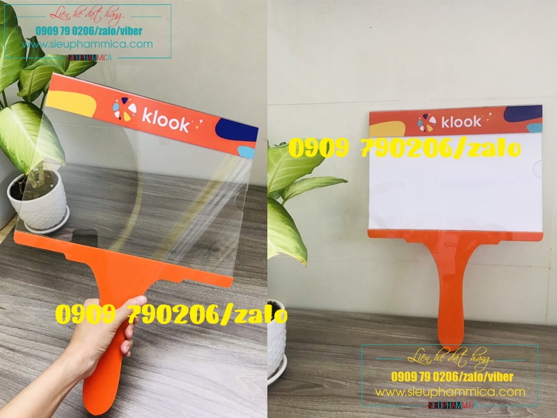 Biển đón cầm tay được làm từ chất liệu mica bền đẹp phù hợp với nhu cầu và mẫu mã của quý khách hàng.Biển đón cầm tay có ưu điểm là dễ dàng di chuyển, giúp khách hàng có thể nhìn nhận rõ ràng.