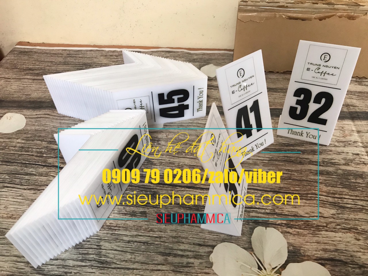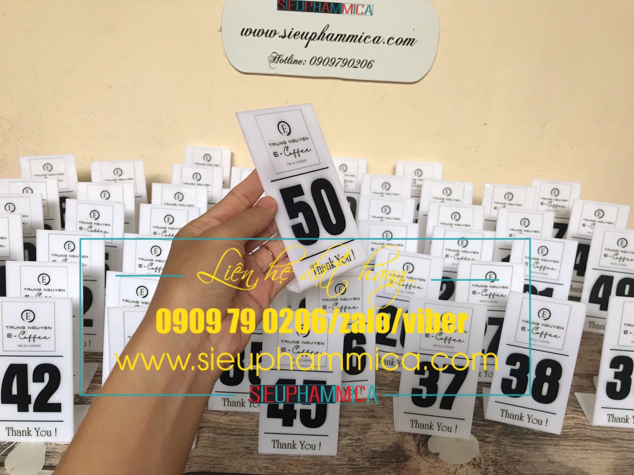 Hiện nay nhu cầu về biển số bàn mica ngày càng nhiều. Biển số bàn mica có thể giúp quán café của bạn trong chuyên nghiệp hơn, tiện lợi hơn.