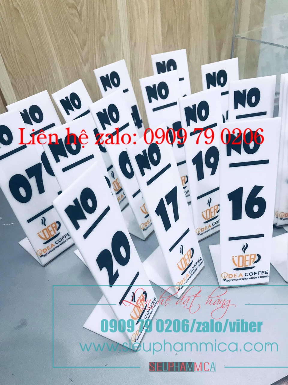 Biển số bàn mica hay còn gọi là thẻ order số bàn, thẻ mica chờ đợi, thẻ số bàn quán, được dùng rộng rãi trong những quán café, nhà hàng quán ăn,….