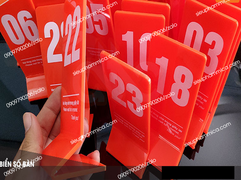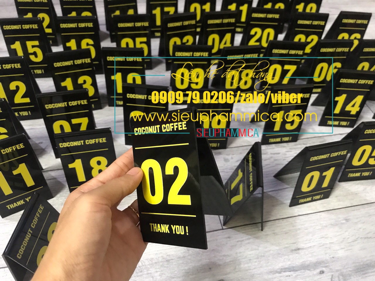 Biển số bàn mica hay còn gọi là thẻ order số bàn, thẻ mica chờ đợi, thẻ số bàn quán, được dùng rộng rãi trong những quán café, nhà hàng quán ăn,….