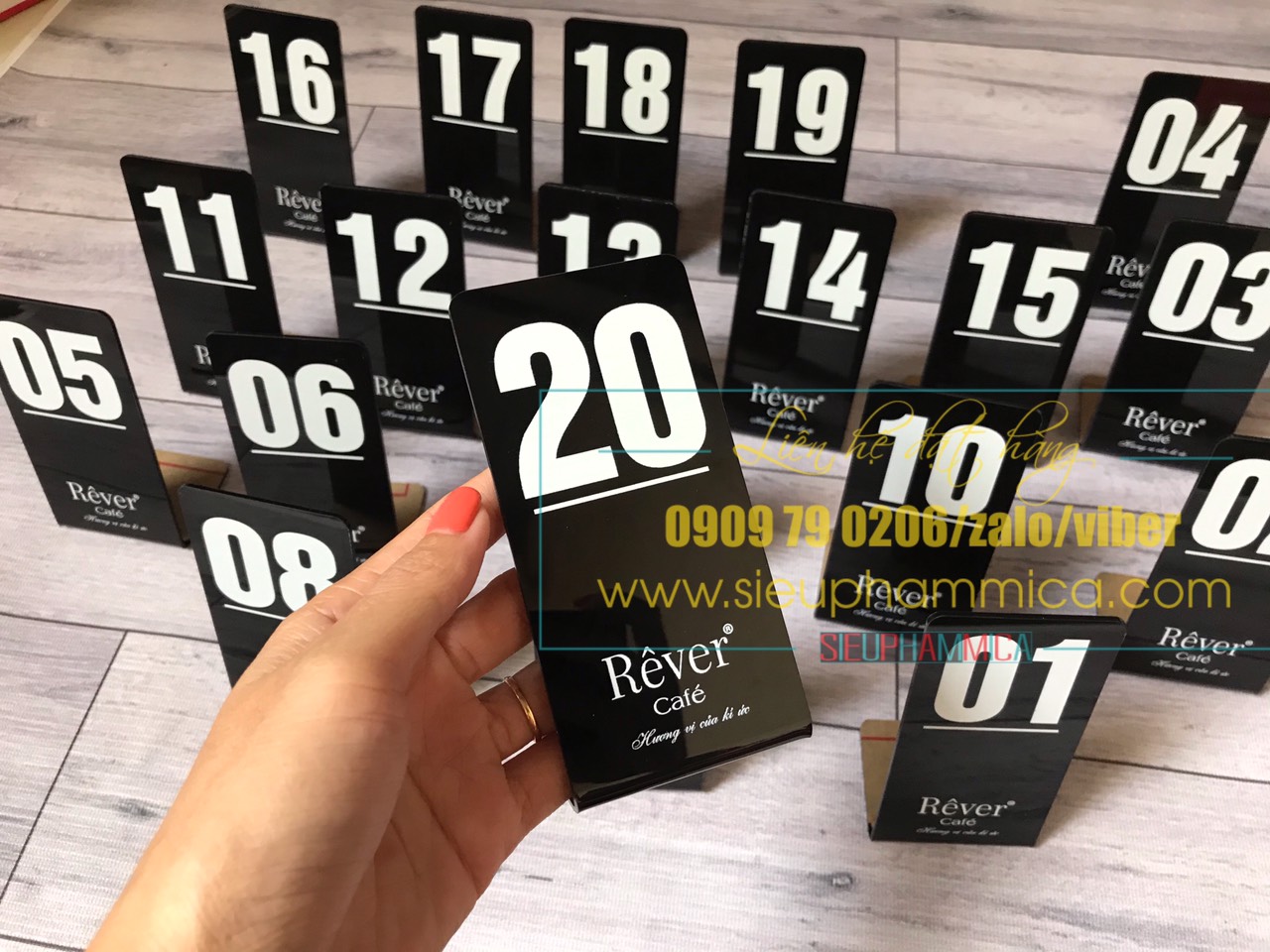 Biển số bàn mica hay còn gọi là thẻ order số bàn, thẻ mica chờ đợi, thẻ số bàn quán, được dùng rộng rãi trong những quán café, nhà hàng quán ăn,….