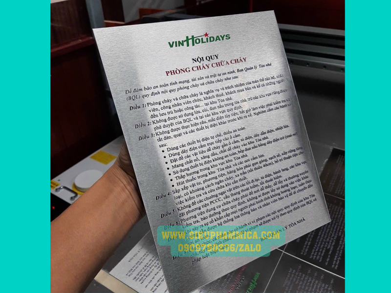Đặc biệt, WWW.SIEUPHAMMICA.COM chuyên làm bảng hiệu inox 304 cao cấp, đáp ứng tiêu chuẩn chất lượng chống hoen gỉ, chịu được tác động của mọi điều kiện thời tiết. Một số nơi làm bảng giá rẻ thường sử dụng dòng inox 201 để tối ưu chi phí vật liệu. Tuy nhiên, thành phẩm ra đời sẽ không đảm bảo độ bền, dễ bị hư hại.