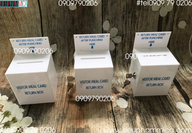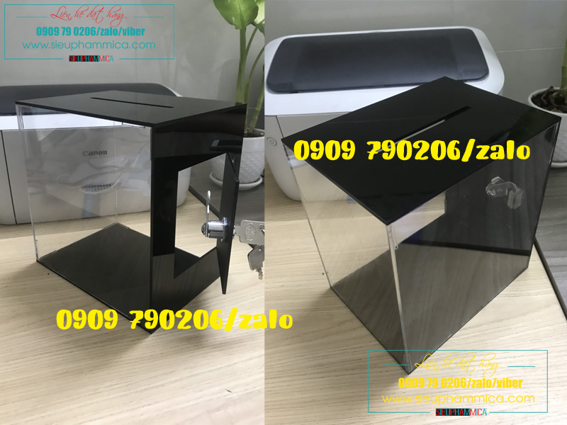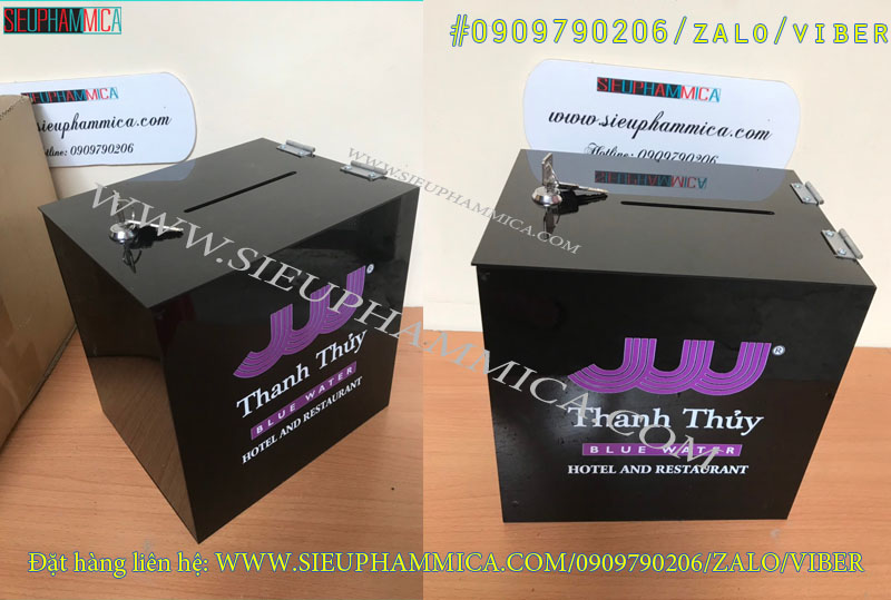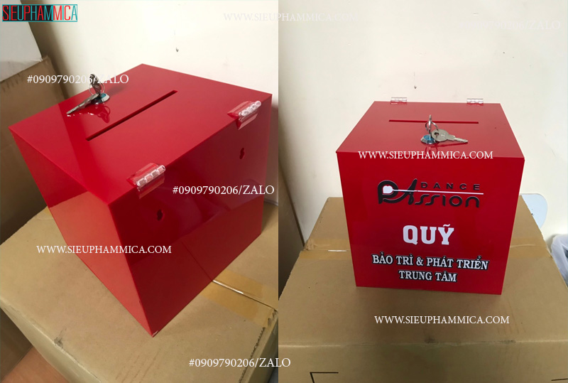Hộp tipbox mica hay còn gọi là hộp tip tiền lẻ (hộp mica) có thể làm theo mọi yêu cầu mẫu mã của quý khách hàng. Sản phẩm có khóa có thể làm mặt trên, sau , ngang hoặc các vị trí phù hợp theo mọi yêu cầu của quý khách hàng.