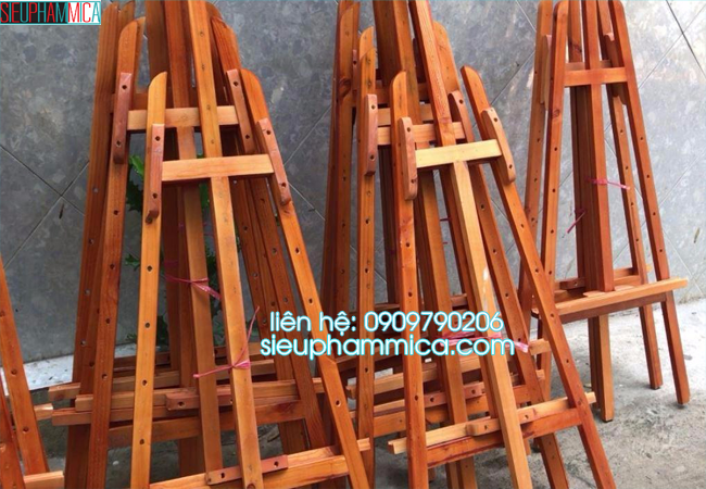 Ưu điểm của standee gỗ là cứng cáp, có thể để được nhiều kích thước tranh, tháo lắp dể dàng. Biển standee gỗ được dùng phổ biến nhất hiện nay so với các loại standee khác.