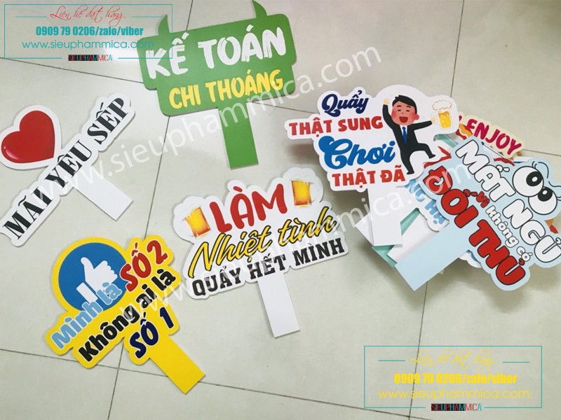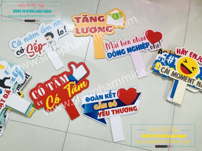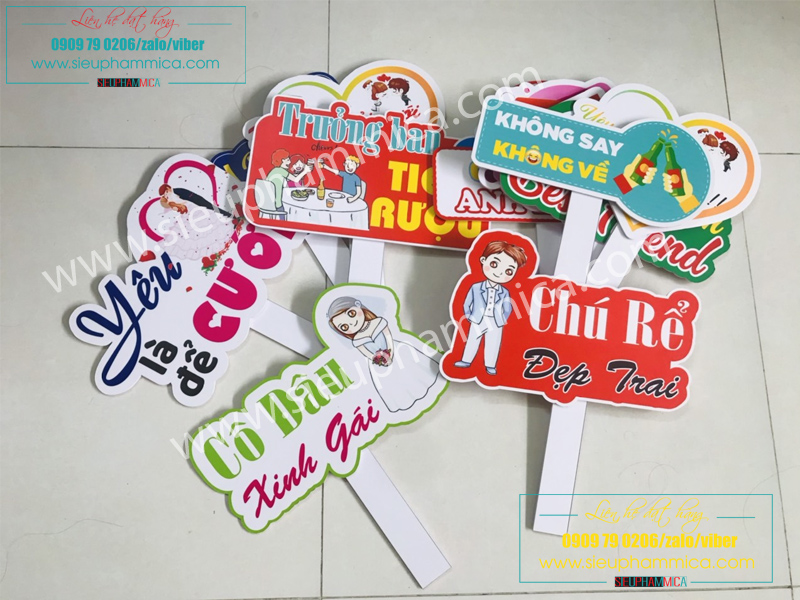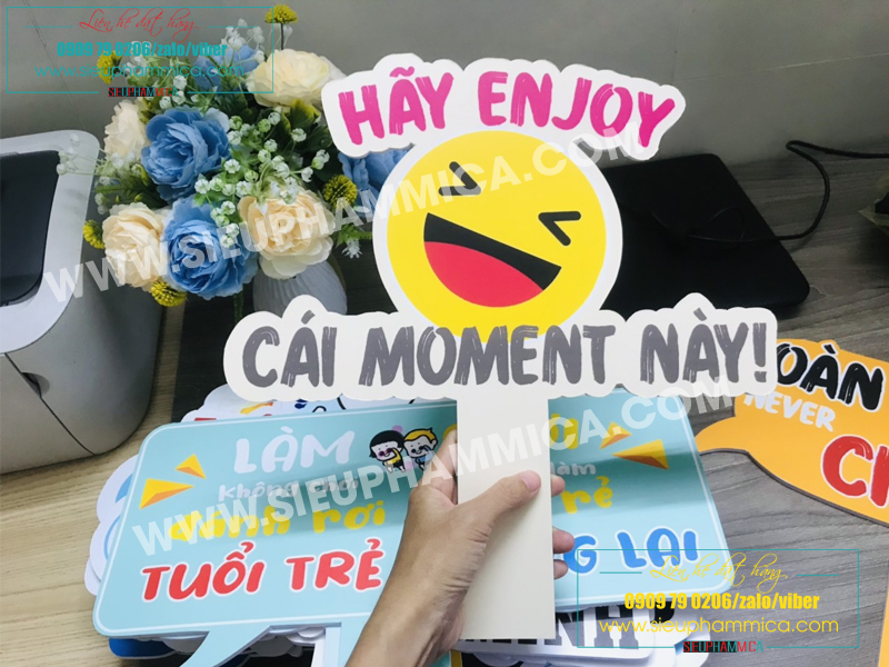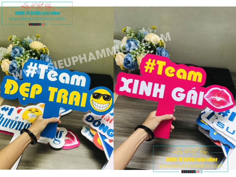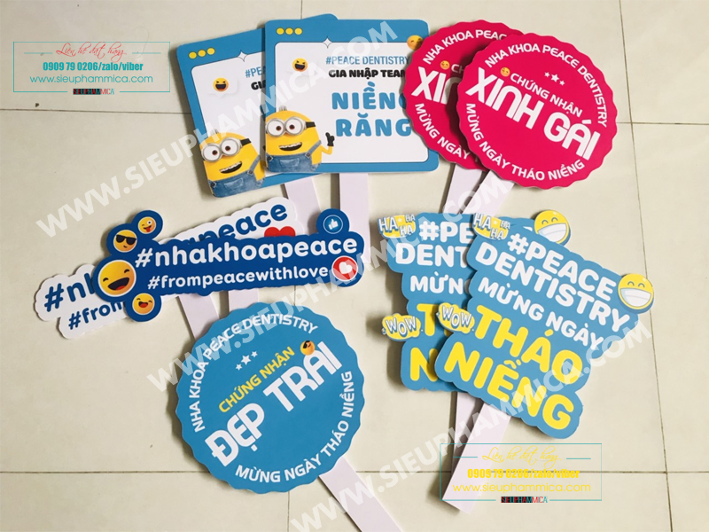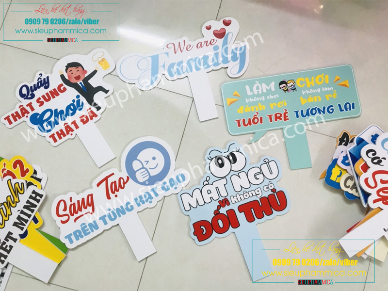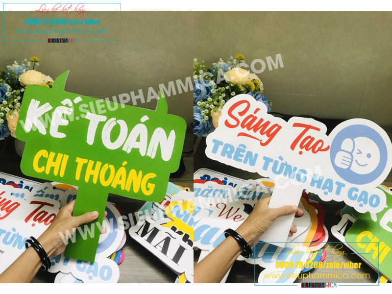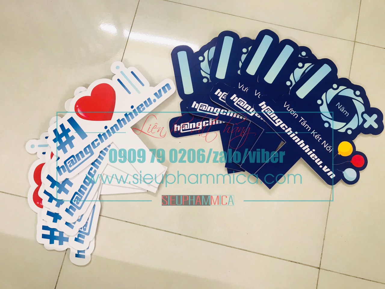 WWW.SIEUPHAMMICA.COM là đơn vị chuyên nhận thiết kế và in hashtag cầm tay chuyên nghiệp. Bảng hashtag được thiết kế nhiều kích thước khác nhau tùy vào nhu cầu của khách hàng. Tuy nhiên, kích thước thông thường của một bảng hashtag chụp ảnh vừa phải rõ chữ khi chụp là khổ A3.