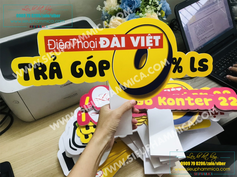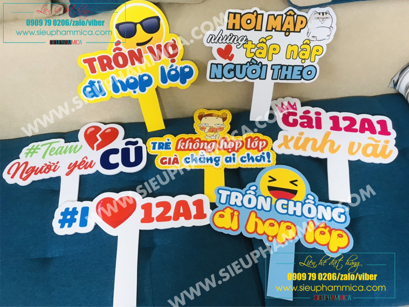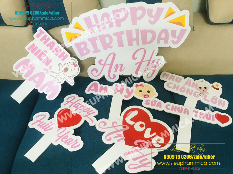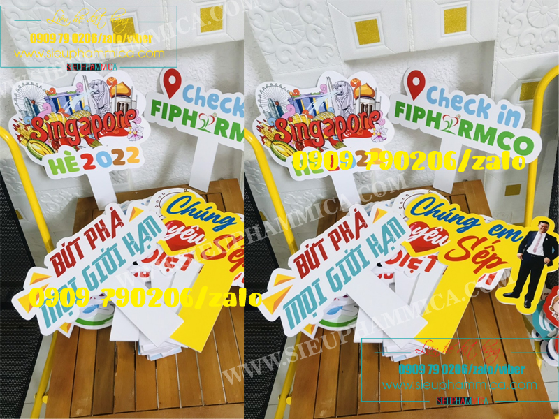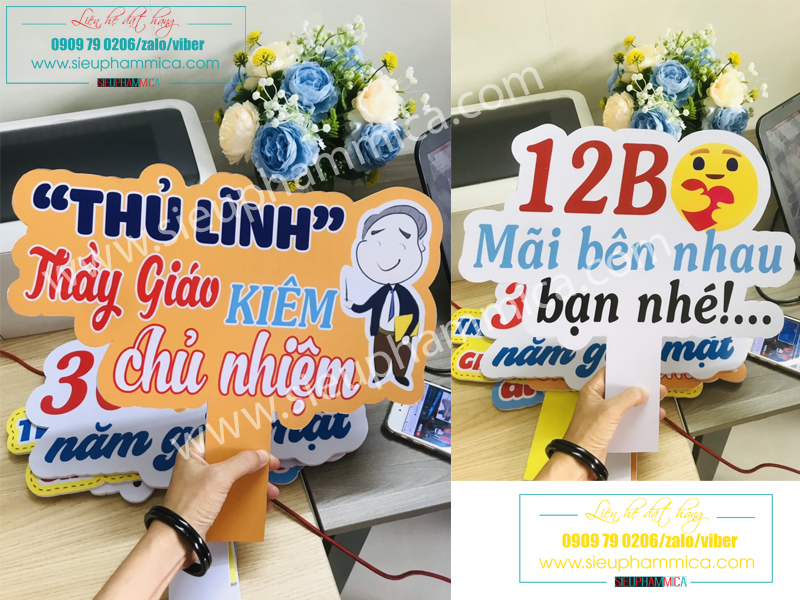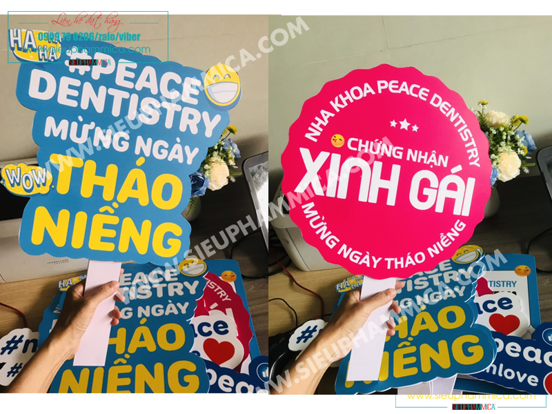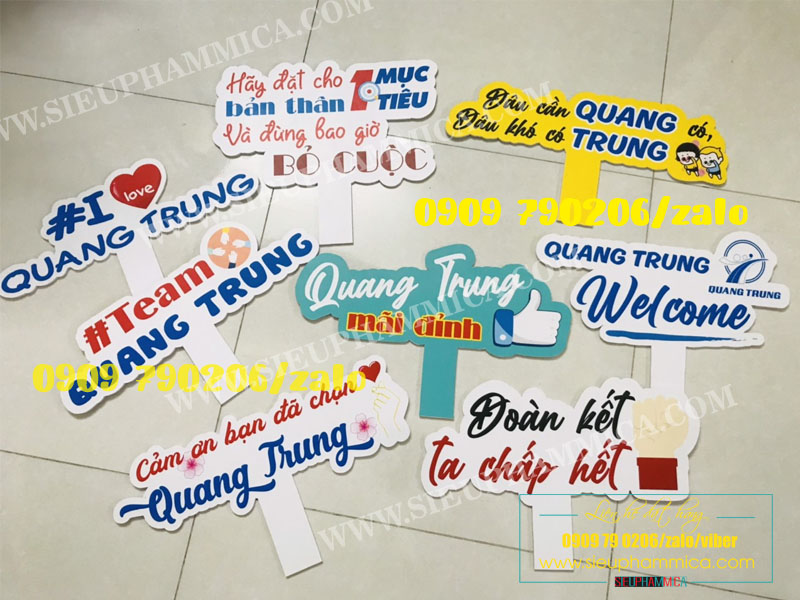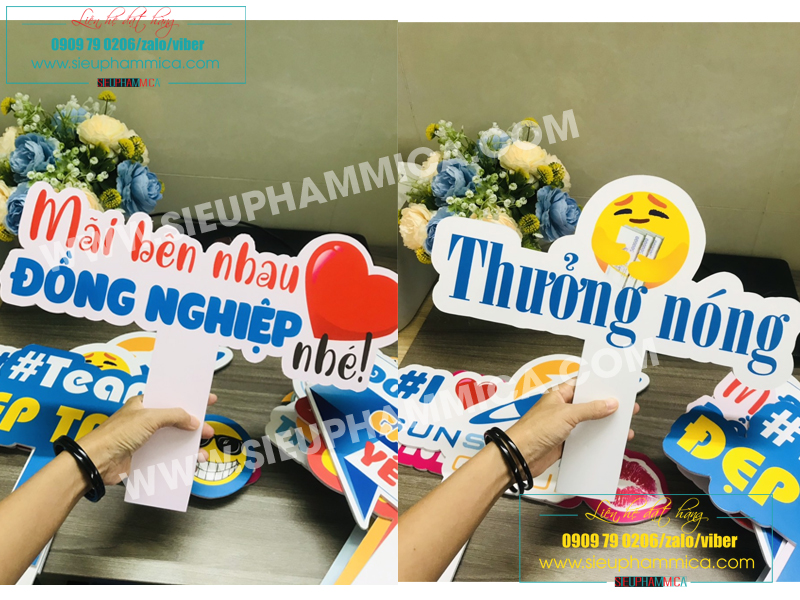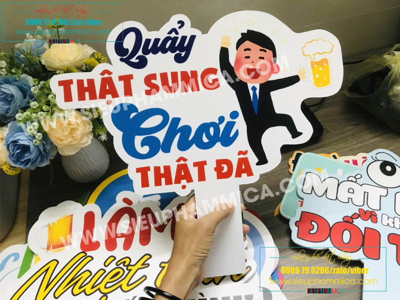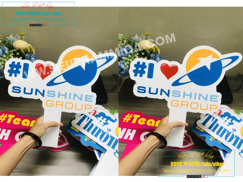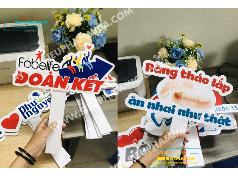 WWW.SIEUPHAMMICA.COM là đơn vị chuyên nhận thiết kế và in hashtag cầm tay chuyên nghiệp. Bảng hashtag được thiết kế nhiều kích thước khác nhau tùy vào nhu cầu của khách hàng. Tuy nhiên, kích thước thông thường của một bảng hashtag chụp ảnh vừa phải rõ chữ khi chụp là khổ A3.