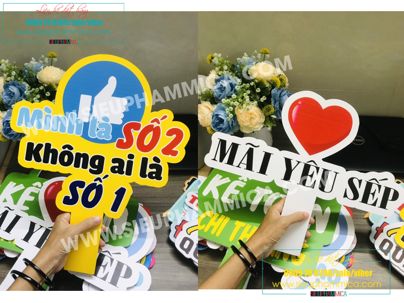 Ngoài fomex thì bảng hashtag còn được làm từ mica, mang lại độ sáng bóng đẹp bền cho bảng. Sản phẩm dành cho khách hàng có nhu cầu sử dụng lâu dài.