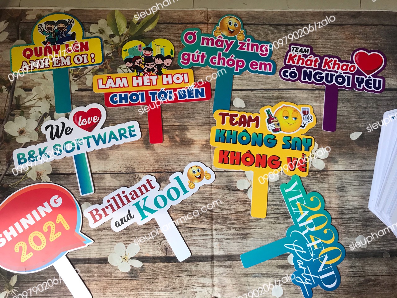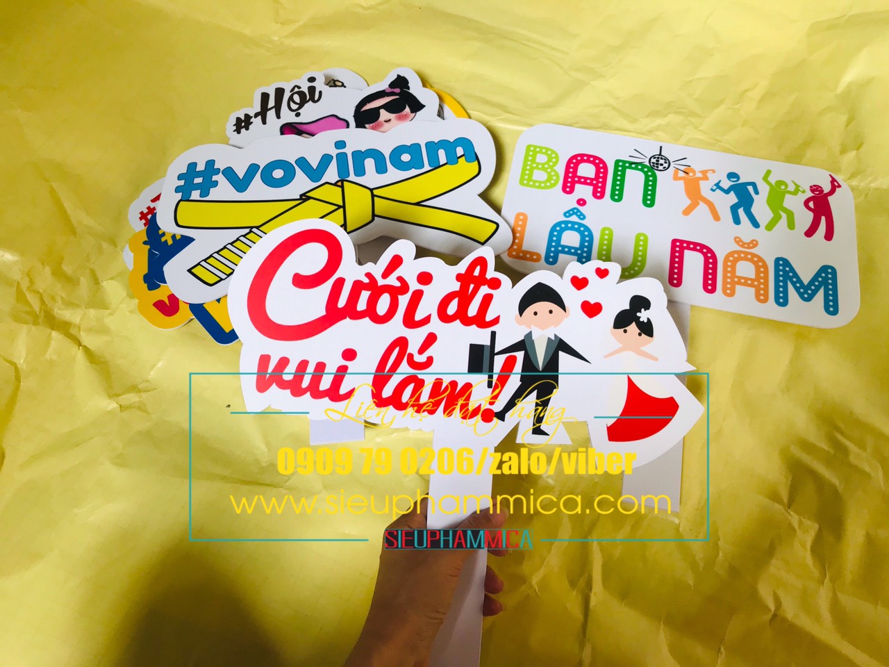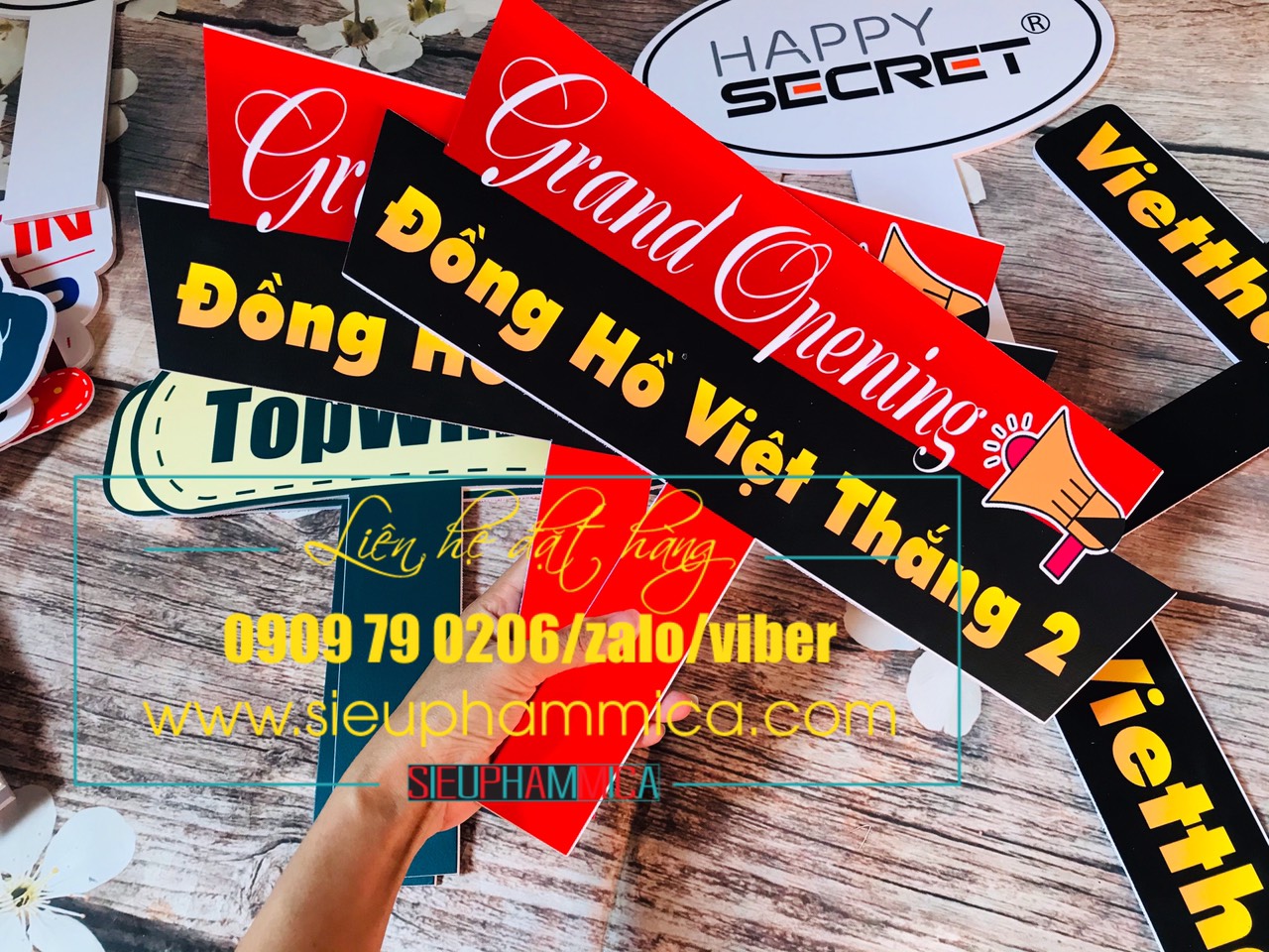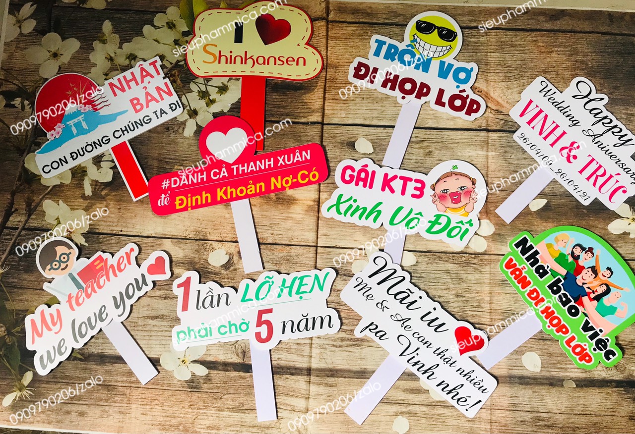 WWW.SIEUPHAMMICA.COM là đơn vị chuyên nhận thiết kế và in hashtag cầm tay chuyên nghiệp. Bảng hashtag được thiết kế nhiều kích thước khác nhau tùy vào nhu cầu của khách hàng. Tuy nhiên, kích thước thông thường của một bảng hashtag chụp ảnh vừa phải rõ chữ khi chụp là khổ A3.