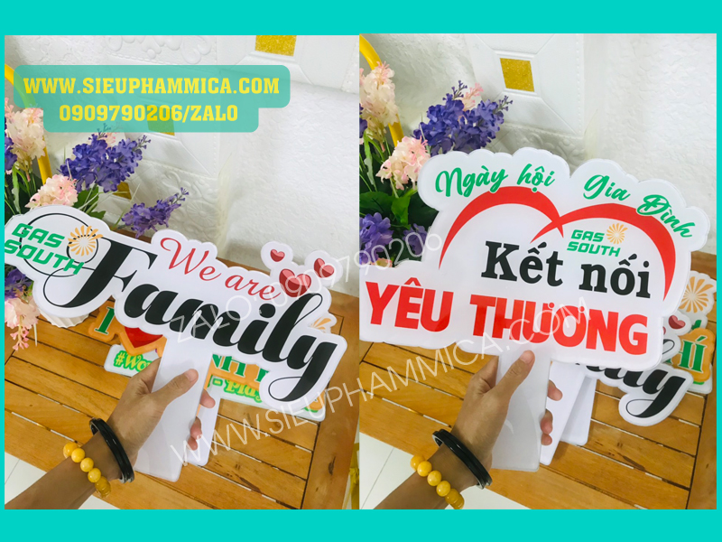 Bảng hashtag chụp hình cầm tay được làm từ fomat 3li, 5li, hoặc bằng mica giá thành sẽ khác nhau theo từng số lượng, kích thước và chất liệu.