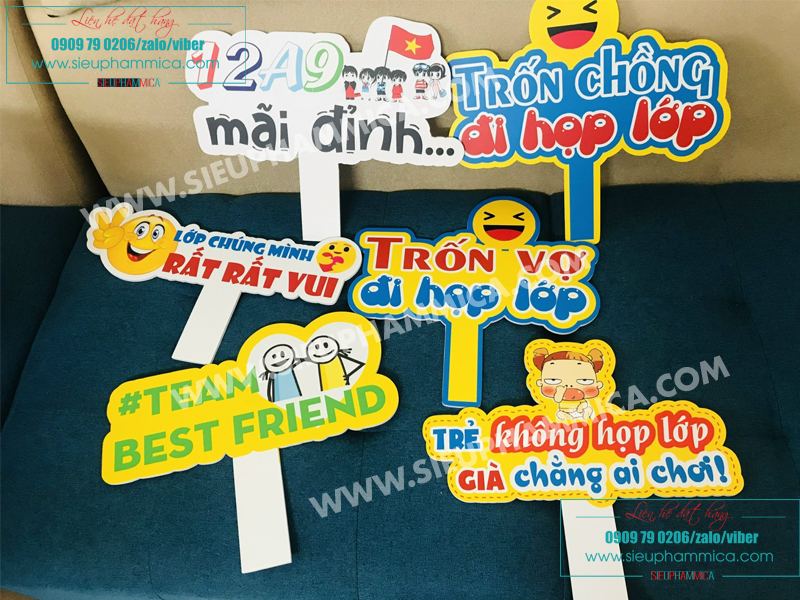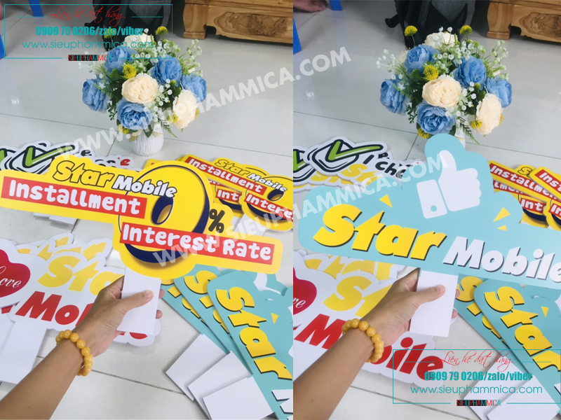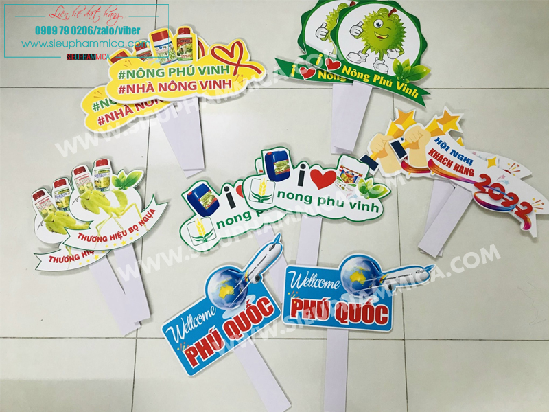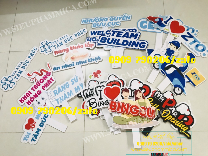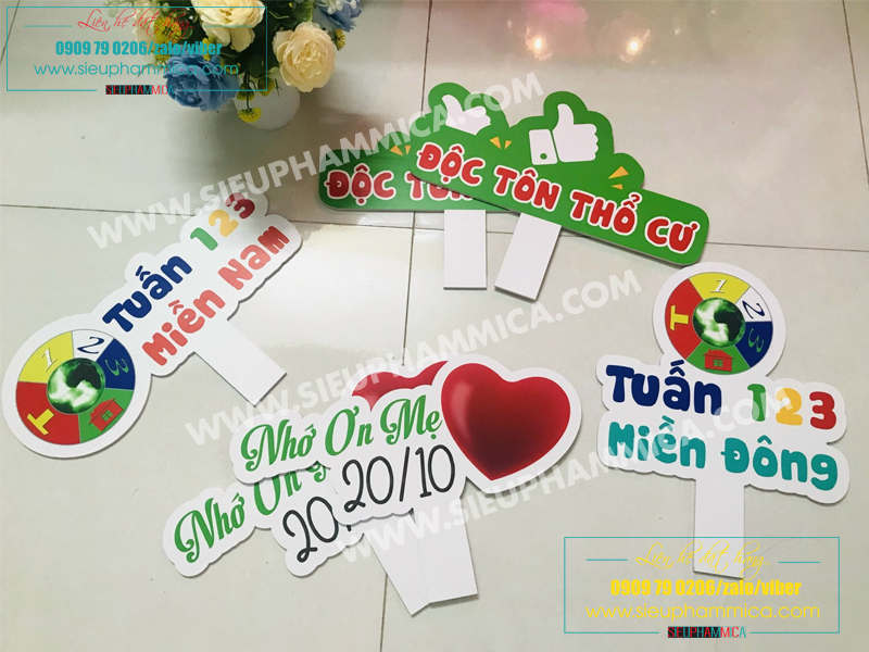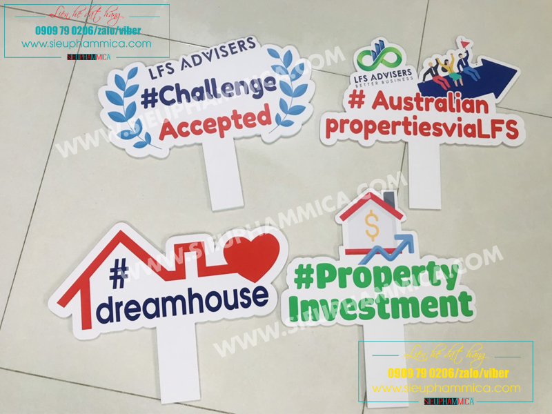 Bảng hashtag chụp hình cầm tay được làm từ fomat 3li, 5li, hoặc bằng mica giá thành sẽ khác nhau theo từng số lượng, kích thước và chất liệu.