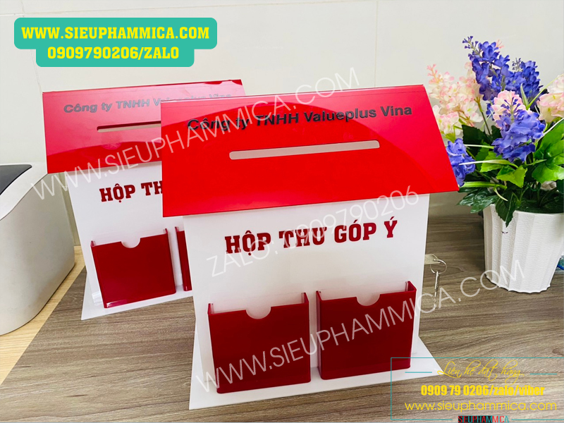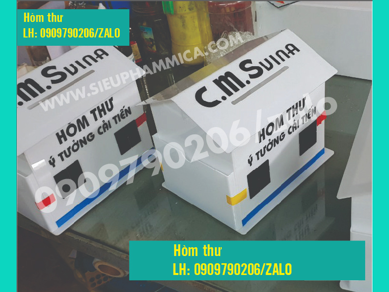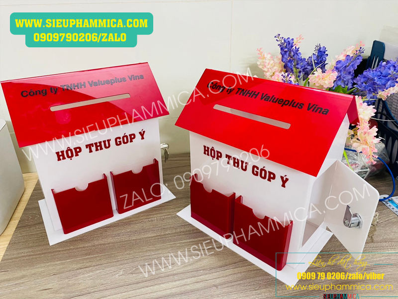 Công ty chúng tôi chuyên nhận gia công hòm thư góp ý mica, chế tác hộp mica góp ý, đặc biệt là thùng thư góp ý mái nhà các loại.