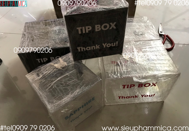 Với mục đích sử dụng boxtips là sản phẩm thùng mica để ở quầy thu tiền, thu ngân khi khách thanh toán sẽ thừa lại khoản tiền nhỏ có thể bỏ vào đó không hoạch toán vào doanh thu của nhà hàng, khách sạn, cửa hàng, công ty.