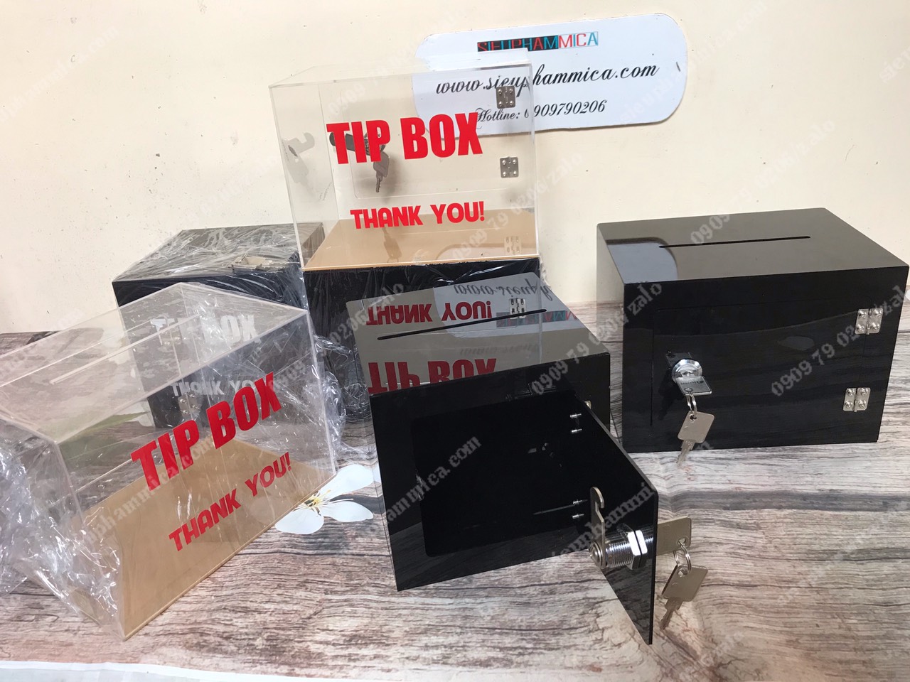 Hộp đựng tiền tipbox trong suốt