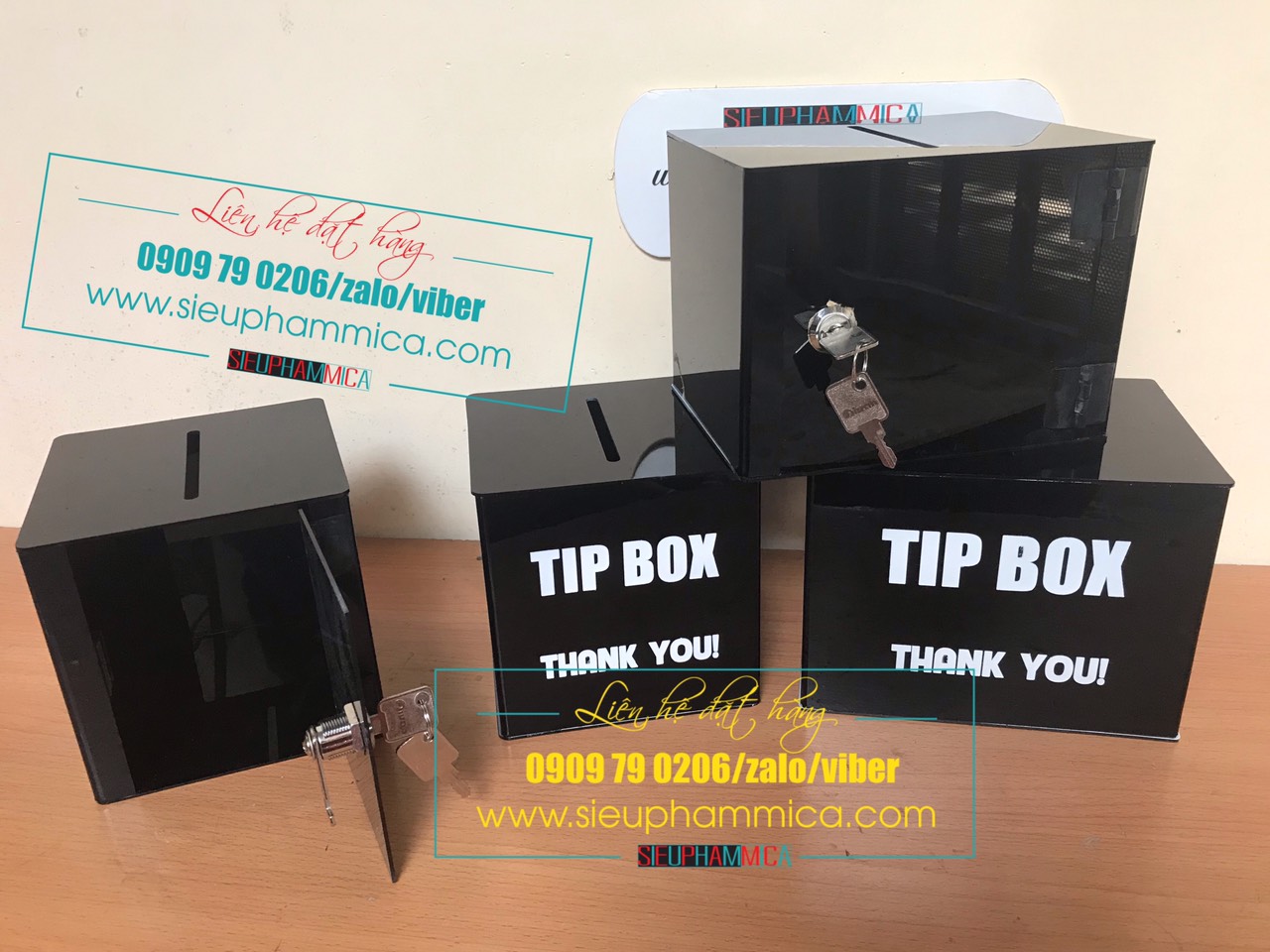 Hộp tipbox mica có nhiều kích thước có thể gia công theo yêu cầu khách hàng. Bên cạnh đó, hộp tipbox mica cũng có nhiều kiểu dáng đa dạng, phù hợp với nhiều nhu cầu của từng khách hàng.