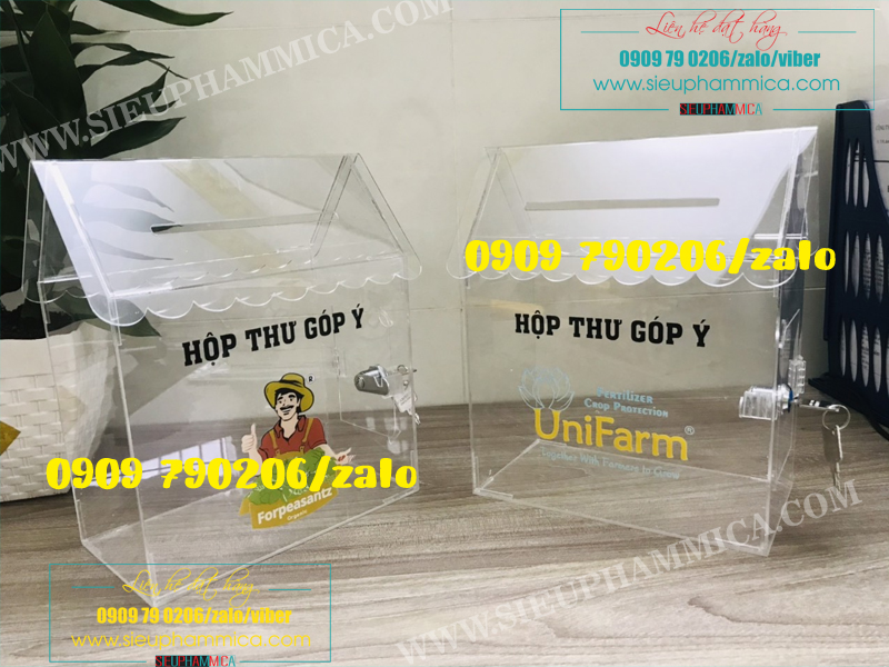 Sieuphammica.com là đơn vị doanh nghiệp cung cấp các sản phẩm được làm tư Mica, inox, fomex với giá ca phải chăng phù hợp túi tiền và chất lượng sản phẩm. Hòm thư góp ý, Hòm thư góp ý mica, hòm thư dáng mái nhà, hòm thư mica trong, thùng góp ý treo tường,… cũng là một trong số nhiều sản phẩm mà nhà sieuphammica.com chúng tôi đặt nhiều mối quan tâm kỳ vọng. Bởi sản phẩm có nhiều lợi ích khi đảm nhận vai trò giữ những vì thư quan trọng của khách hàng.