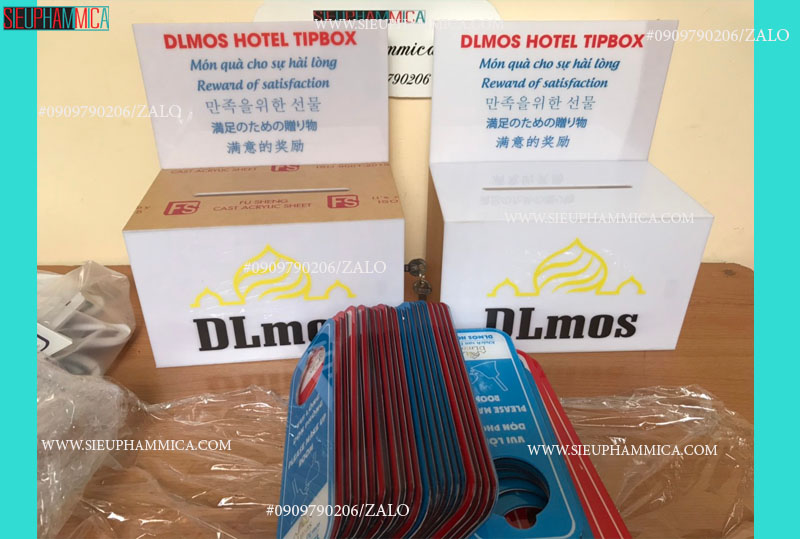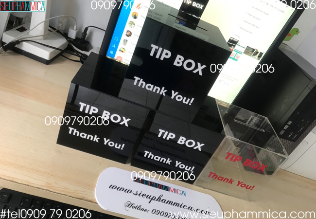 Ngoài sản phẩm hộp tipbox Mica, chúng tôi còn gia công các mẫu hộp thư góp ý, hòm phiếu Mica, hộp trưng bày và các sản phẩm Mica khác.