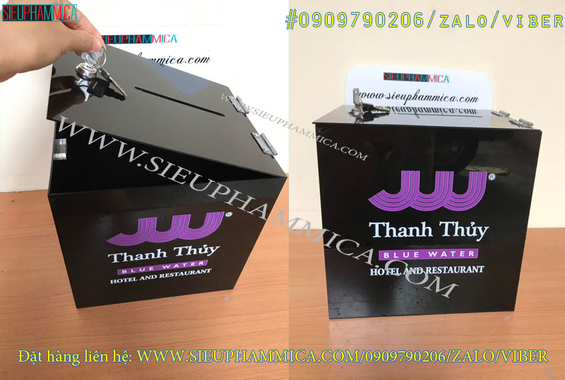Hộp đựng tiền bằng Mica có thể được làm từ nhiều màu sắc khác nhau. Ví dụ: