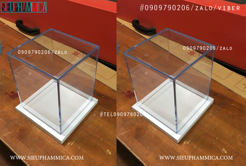 Hộp mica trưng bày đế mica trắng sữa