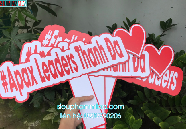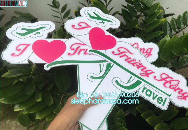 Với đội ngũ thiết kế SIEUPHAMMICA.COM đã cho ra đời những sản phẩm bắt mắt và thu hút. Với chất liệu fomex nhẹ, những vị khách của bạn sẽ nhẹ nhàng và thoải mái trong việc cầm, nếu bạn muốn chắc chắn hơn bạn có thể làm bằng chất liệu mica nhưng loại này sẽ nặng hơn và giá tiền cũng cao hơn làm fomex. Nội dung được in decal với công nghệ hiện đại, sẽ cho ra sản phẩm sắc nét và sống động.