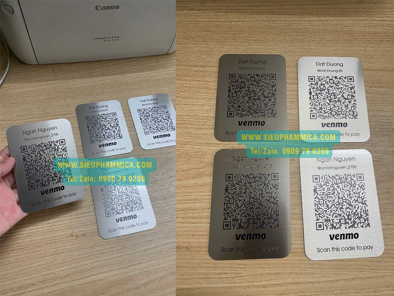 Bằng công nghệ in UV trực tiếp hoặc ăn mòn hoặc in decal hoặc phun sơn, khắc lazer,…. mà cho ra Thẻ QR Code đẹp với quy cách khác nhau nhưng độ bền không kém.