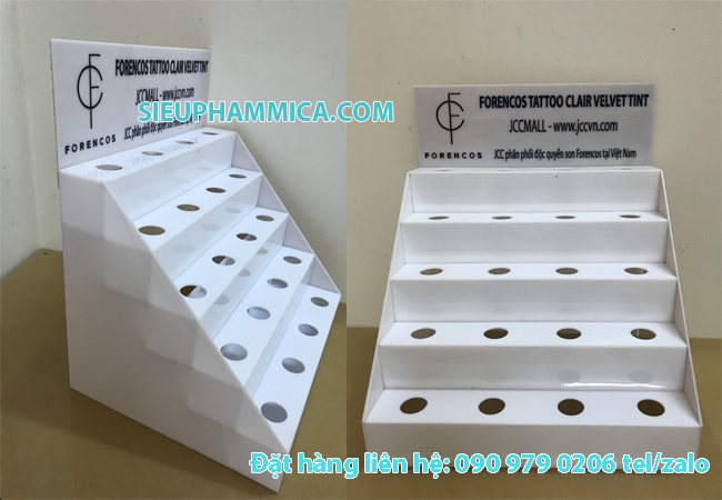 SIEUPHAMMICA.COM sẽ đáp ứng được tất cả các kích thước cũng như kiểu dáng. Không những kệ mỹ phẩm, SIEUPHAMMICA.COM còn gia công các sản phẩm họ hàng như: kệ đựng son môi, kệ đựng nươc sơn, các mẫu kệ trưng bày khác về mỹ phẩm.