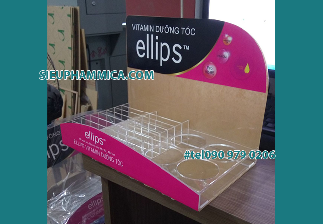 Kệ mỹ phẩm mica được làm từ mica Đài Loan có thể kết hợp dán decan, phun sơn, khắc laser theo màu sắc, thương hiệu sản phẩm giúp sản phẩm trông bắt mắt, dễ gây chú ý với những thông điệp ngắn gọn đầy đủ đến khách hàng. Kệ mỹ phẩm mica có 2 dạng chính: treo tường hoặc được để bàn.