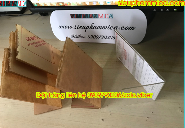 Kệ giá tiền, kệ thông tin sản phẩm được làm từ mica trong Đài Loan bóng sáng, được cắt uốn tỉ mỉ, có một khe nhỏ để lồng được vừa 1 tờ giấy vào bên trong. Do tính chất trong suốt của mica nên chúng ta có thể thấy được thông tin trên giấy.