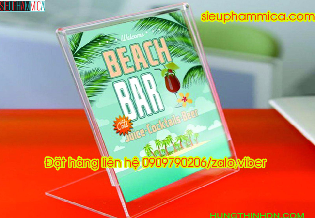 Kệ giá tiền mica là sản phẩm được làm từ mica Đài Loan, được chế tác thành dạng chữ L hoặc dáng chữ A dùng để lồng giấy có chứa thông tin của sản phẩm vào bên trong.