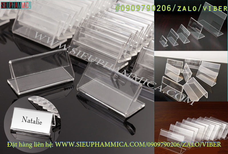 Kệ giá tiền mica hay còn gọi là thẻ mica chữ L, thẻ mica chữ A, thẻ mica lồng thông tin sản phẩm, kệ mica L,….