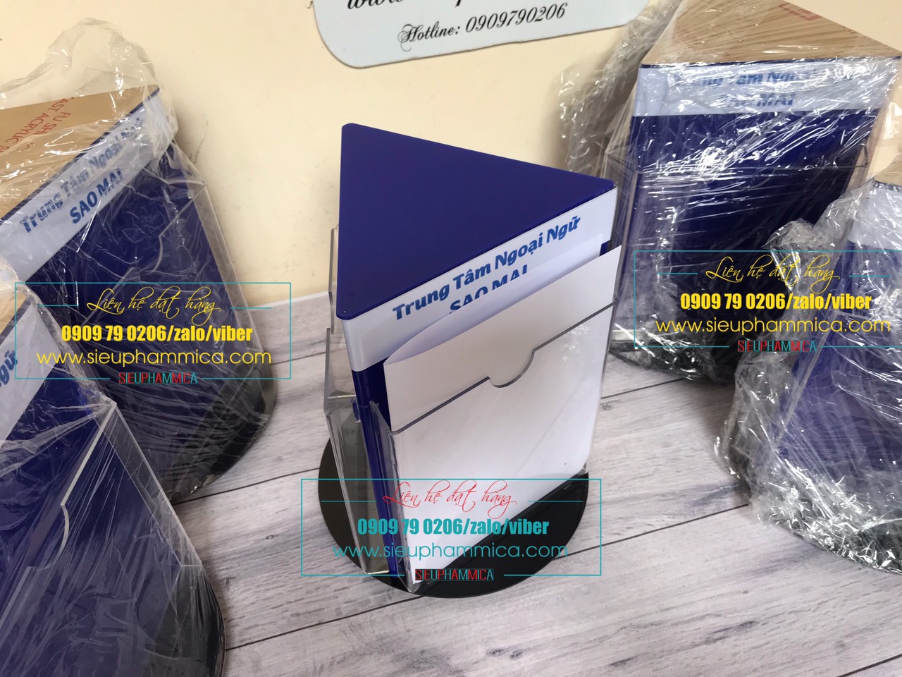 Sản phẩm Kệ Mica Xoay – Chuyên cung cấp và gia công tấm mica,Cung cấp các loại kệ mica để bàn, kệ mica, kệ mica menu xoay 3 mặt được sử dụng nhiều cho các văn phòng, các đơn vị bán hàng, các trường học, bệnh viện với nhiều mẫu mã đảm bảo chất lượng nhất đến mọi quý khách hàng.