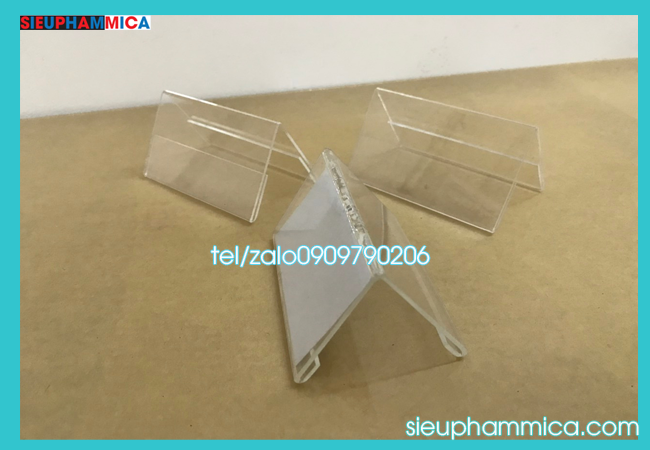 Kệ giá tiền, kệ thông tin sản phẩm được làm từ mica trong Đài Loan bóng sáng, được cắt uốn tỉ mỉ, có một khe nhỏ để lồng được vừa 1 tờ giấy vào bên trong. Do tính chất trong suốt của mica nên chúng ta có thể thấy được thông tin trên giấy.