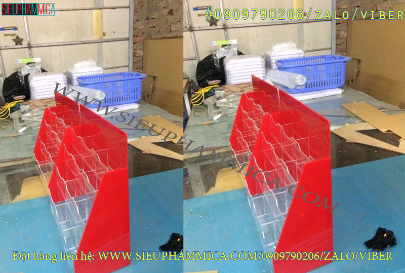 Kệ mica đựng card có thể thiết kế nhiều tầng, nhiều ngăn chứa