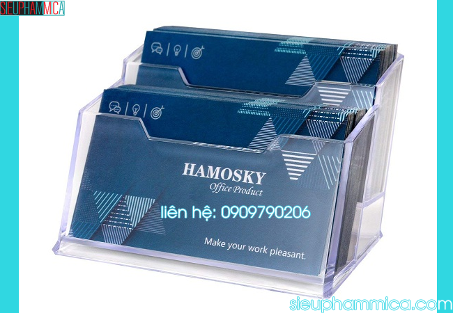 Kệ mica card visit được thiết kế theo mẫu mã riêng của khách hàng, đối tác với nhiều kiểu mẫu kệ mica đẹp chuyên dùng để trưng bày card visit. Các loại mẫu mã kệ mica card visit được công ty chúng tôi thiết kế gia công theo mọi số .