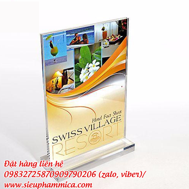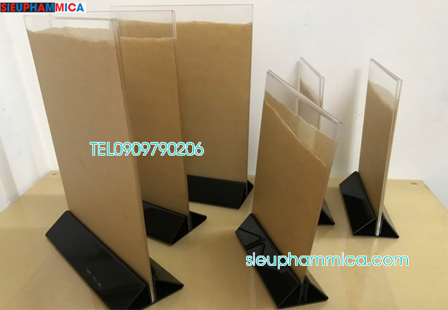 WWW.SIEUPHAMMICA.COM đã tạo ra sản phẩm kệ menu từ chất liệu mica, sản phẩm tạo ra có độ trong suốt như kính giúp khách hàng có thể dễ dàng quan sát tờ menu bên trong từ 2 phía nhưng lại có độ bền cao, không bị vỡ, hỏng như kính, đặc biệt bạn còn có thể kết hợp in lưới hoặc dán đề can thông tin công ty, nội dung nhằm pr cho hình ảnh công ty, siêu thị, doanh nghiệp của mình.