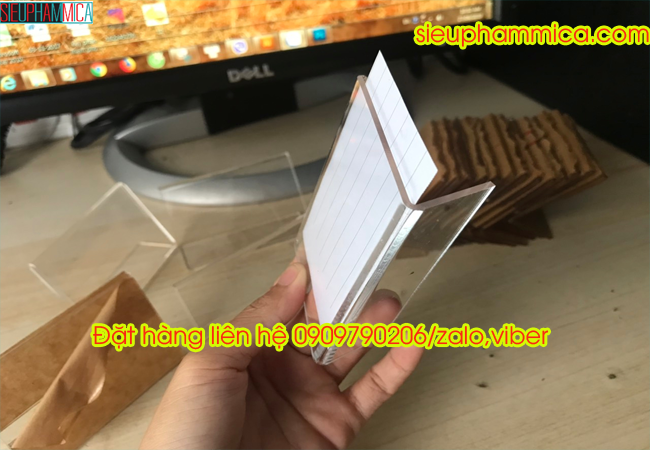 Kệ giá tiền, kệ thông tin sản phẩm được làm từ mica trong Đài Loan bóng sáng, được cắt uốn tỉ mỉ, có một khe nhỏ để lồng được vừa 1 tờ giấy vào bên trong. Do tính chất trong suốt của mica nên chúng ta có thể thấy được thông tin trên giấy.