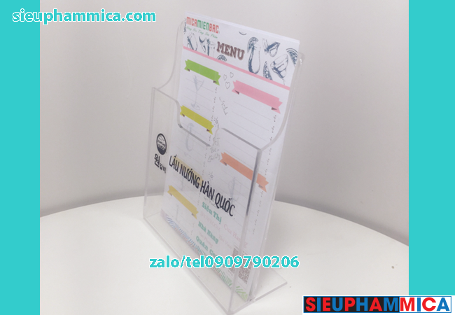 Kệ tờ rơi có thể đựng được nhiều tại liệu kích thước khổ A4, A5, A6, 10X20,… Được làm từ mica 2mm, 3mm, 5mm, 8mm,… Tùy theo nhu cầu mỗi khách như thế nào thì chúng tôi sẽ làm theo như thế.
