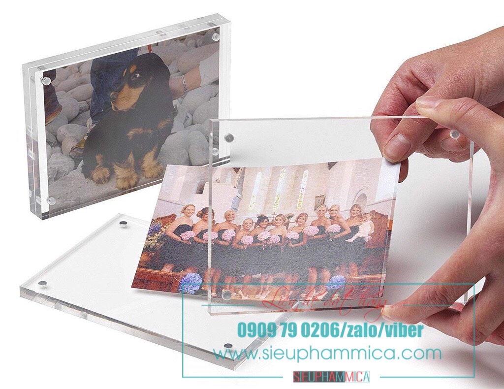 Khung mica hít nam châm, khung ảnh mica để bàn sản phẩm được làm từ mica Đài Loan trong suốt để đảm bảo việc lồng ảnh vào bên trong.