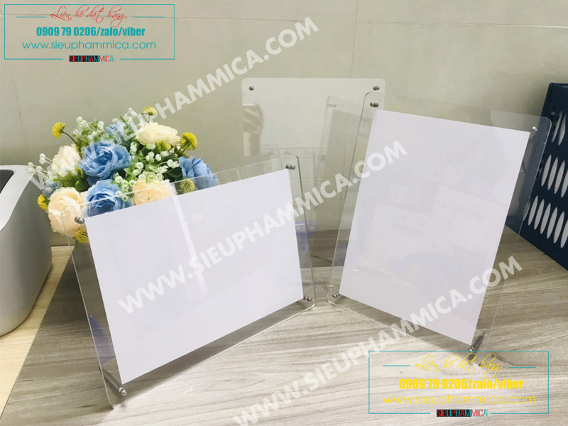 Khung mica hít nam châm, khung ảnh để bàn hình vát bóng cạnh