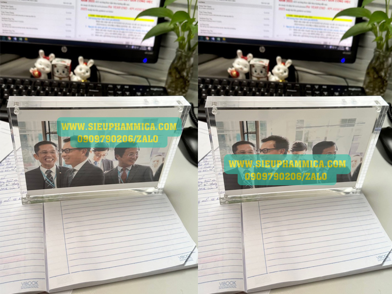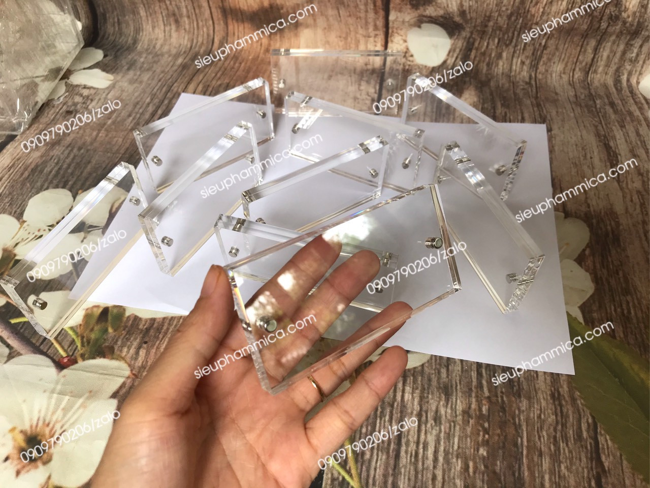 Khung ảnh mica nhỏ gọn, nhìn rất thẩm mỹ và tinh tế, dễ sử dụng tại nhà, trong văn phòng. Khung ảnh mica là sự lựa chọn hoàn hảo cho sự trưng bày những hình ảnh nhỏ của bạn với màu sắc rõ ràng.