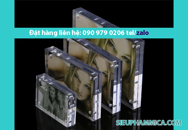 Khung ảnh mica được làm từ vật liệu mica đài loan nên đủ li và sáng bóng dễ lau chùi, dễ mang đi, di chosen khi khách hàng cần bố trí những nơi khác. Mặt khác khung ảnh mica để bàn còn dễ tháo lắp để thay ảnh khác khi khách hàng không thích ảnh muốn thay ảnh mới.Khung ảnh mica để bàn là một sản phẩm vô cùng tiện lợi, và tinh xảo khi được cắt lazer và mài các cạnh sáng bóng tạo độ mềm mượt cho các cạnh của khung. Khung có nhiều loại, khung có chân chống inox, khung ko có chân chống, khung hít nam châm,…