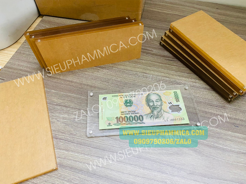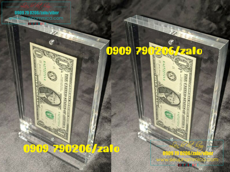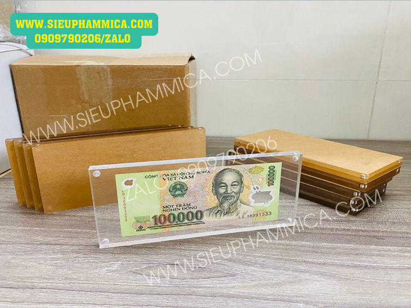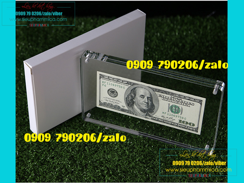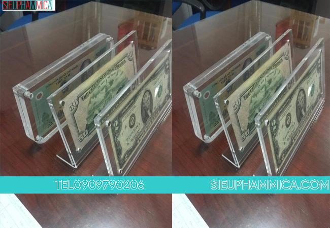 Kẹp tiền mica, khung mica tiền đô được sản xuất theo kích thước tiêu chuẩn, có thể để vừa các mệnh giá tiền của nhiều nước khác nhau. SIEUPHAMMICA.COM là cơ sở sản xuất kệ giá để tiền số lượng lớn. Do đó chúng tôi có thể đáp ứng nhu cầu khách lẻ lấy trong vòng 3-4 ngày đặt hàng, khách bán buôn số lượng lớn với giá thành rẻ.