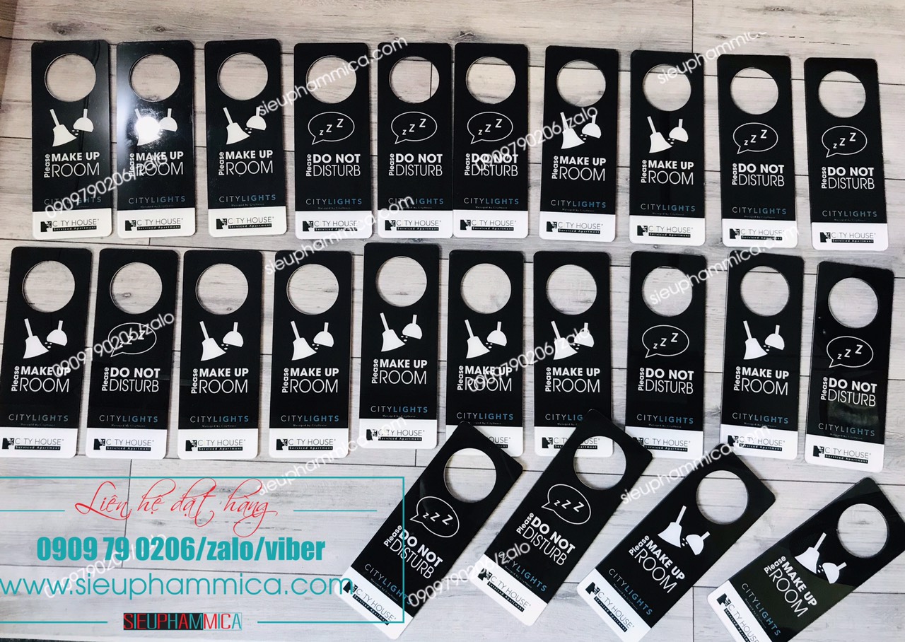 Ngoài biển không làm phiền, xin đừng làm phiền, Biển không làm phiền khách sạn, biển do not disturb mica, biển mica in decal, biển không làm phiền, biển yêu cầu dọn phòng, thẻ số phòng thay đồ, thẻ phòng thay quần áo, biển cấm làm phiền, biên please clean my room