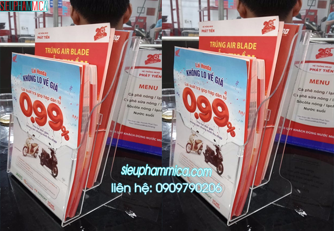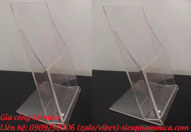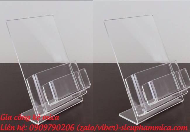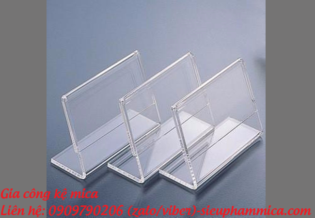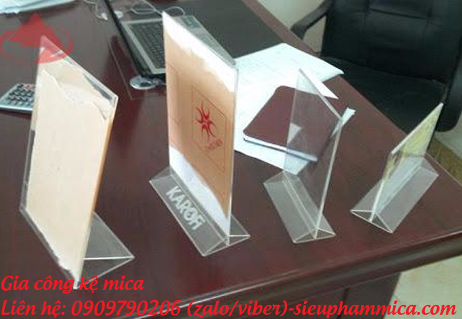 - Mica là vật liệu có thể chế tác thành nhiều sản phẩm khác nhau như: kệ tờ rơi, kệ menu thực đơn, kệ mỹ phẩm, kệ đựng bút, kệ giá tiền, khung ảnh treo tường,....