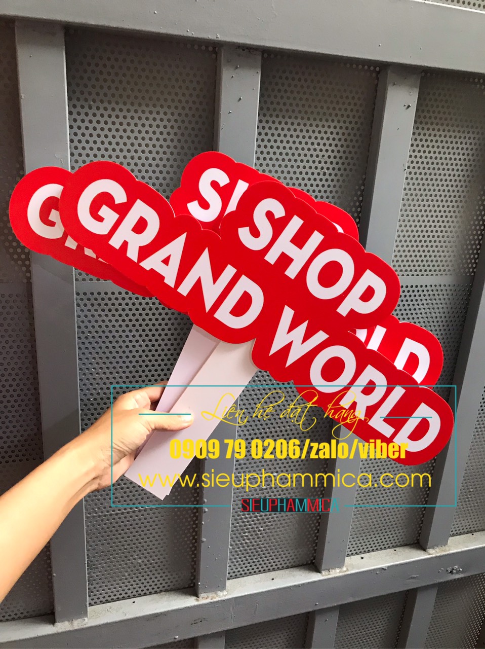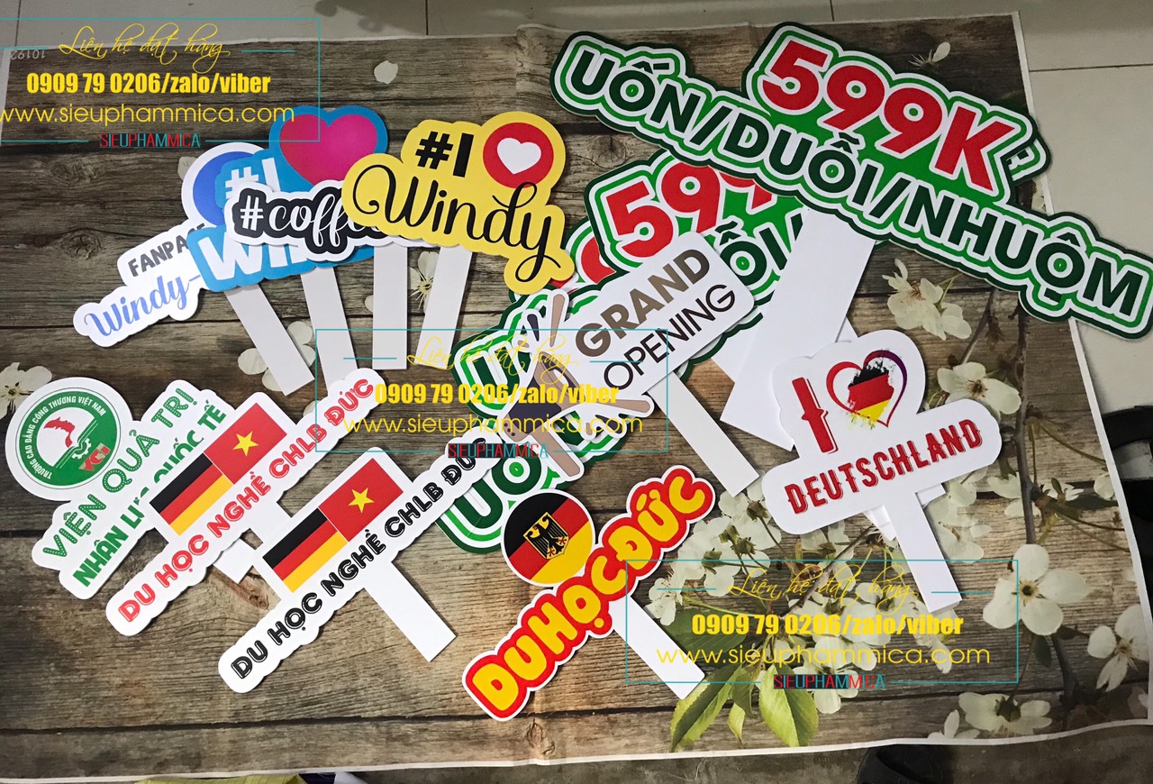 Được sử dụng nhiều nhất trong hầu hết các chương trình và sự kiện, hashtag cầm tay luôn được ưa chuộng nhất trên thị trường. Cấu tạo của nó gồm có 2 phần chúng là phần thân và phần đế. PP là chất liệu chính dùng để làm nên hashtag vì tính nhẹ bền và dễ tạo hình bằng máy hoặc cắt bằng tay. Phần thân được in các nội dung hashtag với nhiều nội dung khác nhau tùy thuộc vào nhà tổ chức. Do đó mẫu mã của chúng rất đa dạng và luôn được sử dụng trong các chiến lược marketing của các công ty